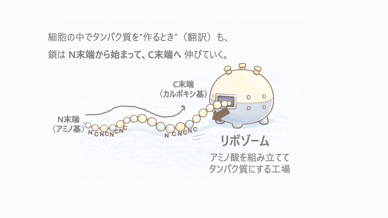 鎖は N末端から始まって、C末端へ 伸びていくんだよ。