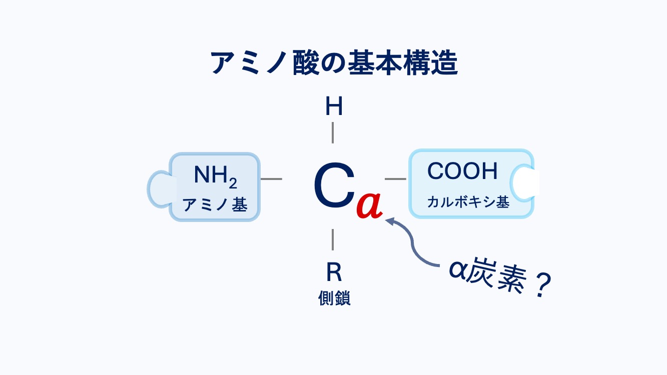 NH₂ / COOH / R / H がくっついている炭素が Cα だよ。