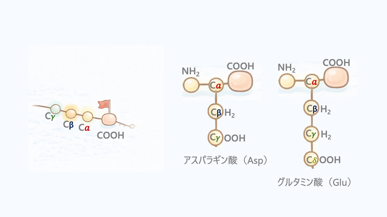 だから Aspの側鎖のCOOHは γ-カルボキシ基 と