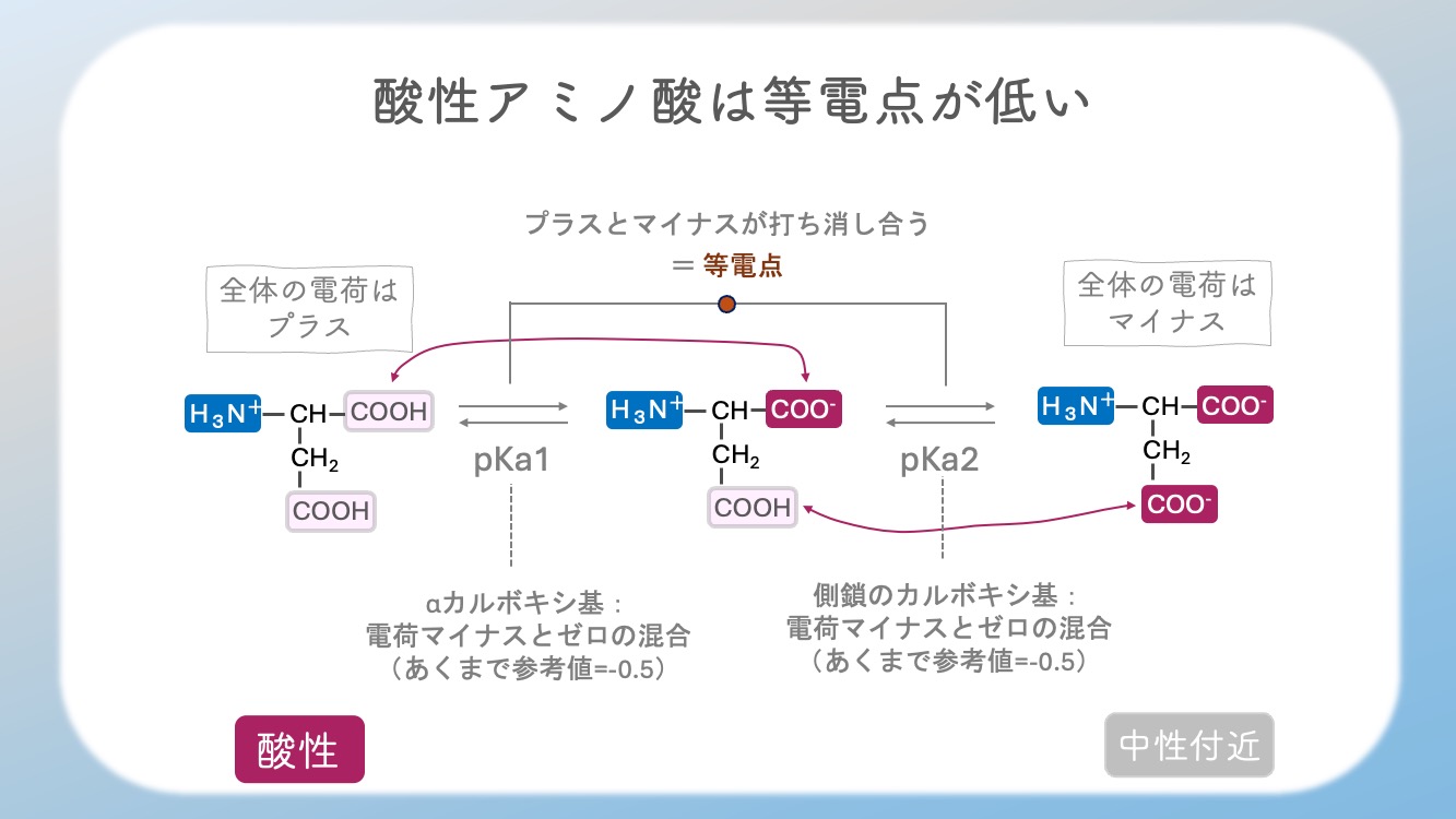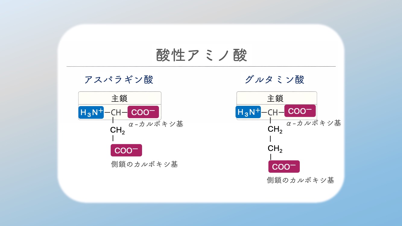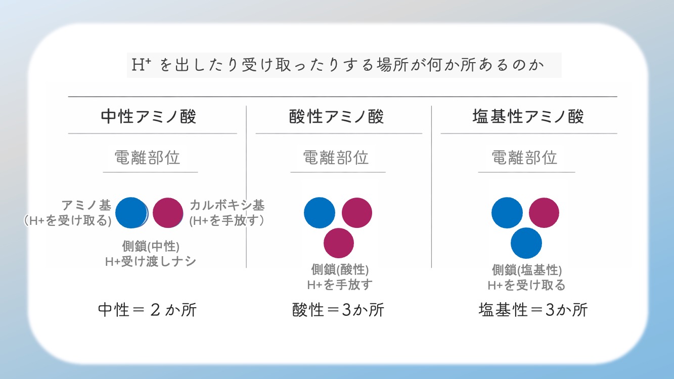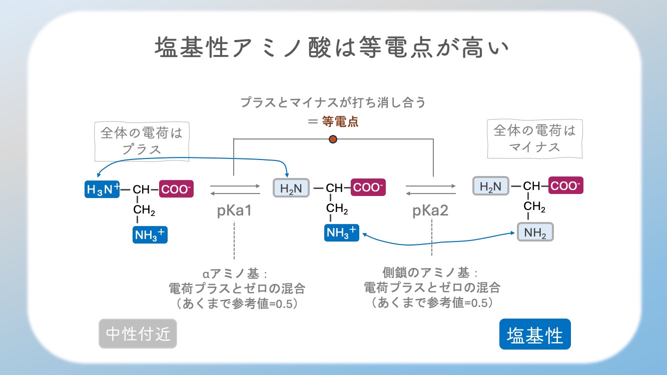 詳しくは前の記事「アミノ酸のイオン性も見てみてね。
