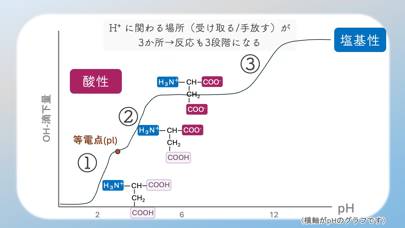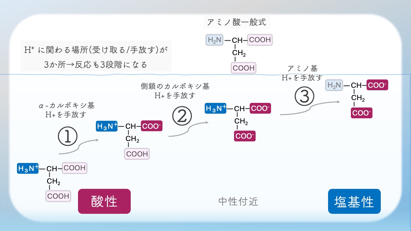 酸性アミノ酸 = 酸性の側鎖が追加 = 3段型
