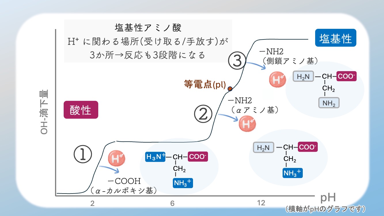 塩基性アミノ酸 = 塩基性の側鎖が追加 = 3段型