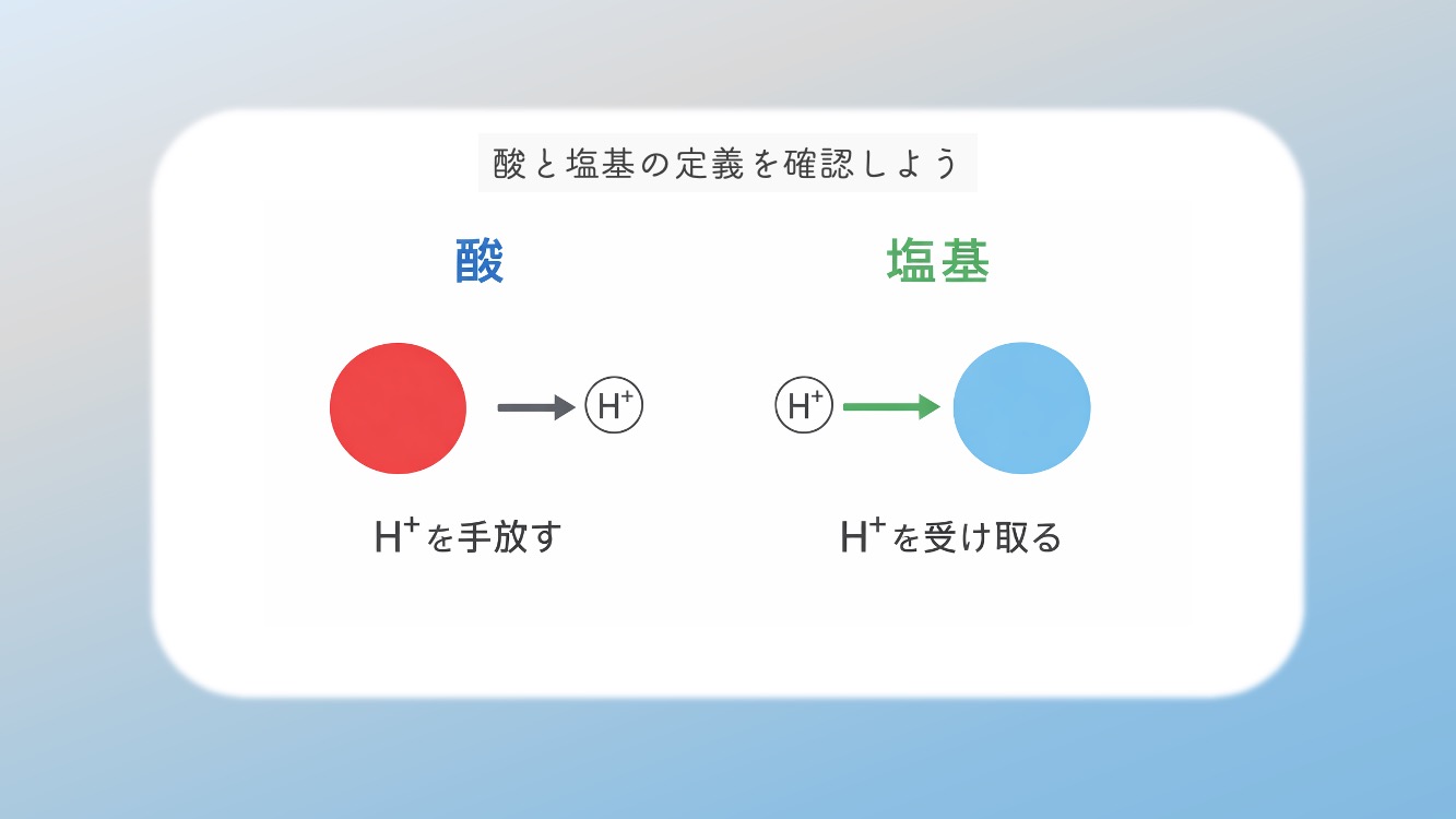 〜酸は H⁺ を手放す。塩基は H⁺ を受け取る