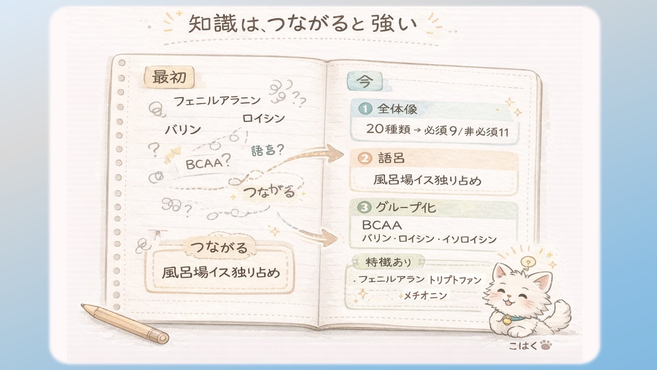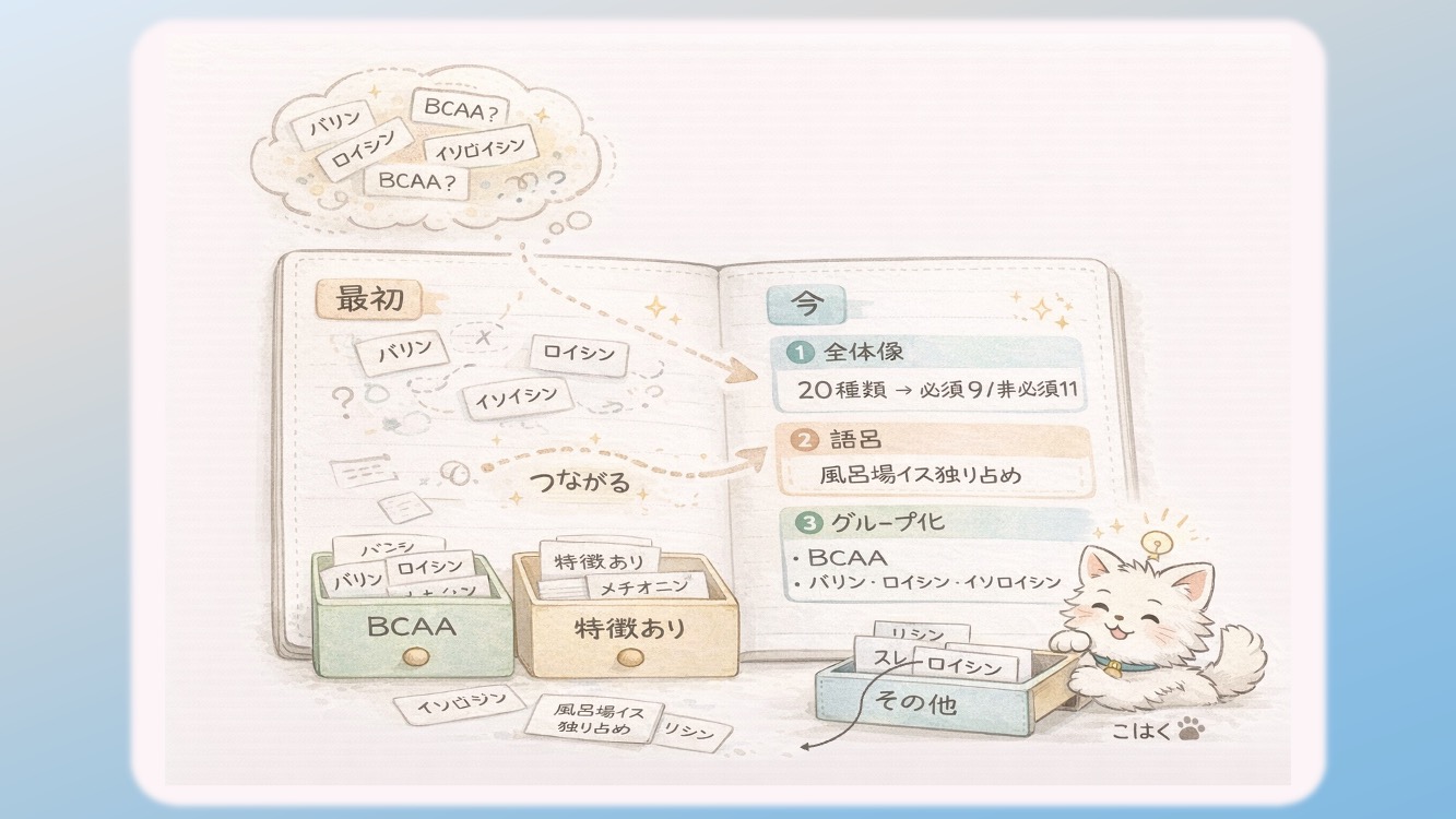 この記事を読み終える頃には、20種類のアミノ酸がスッキリ整理✨