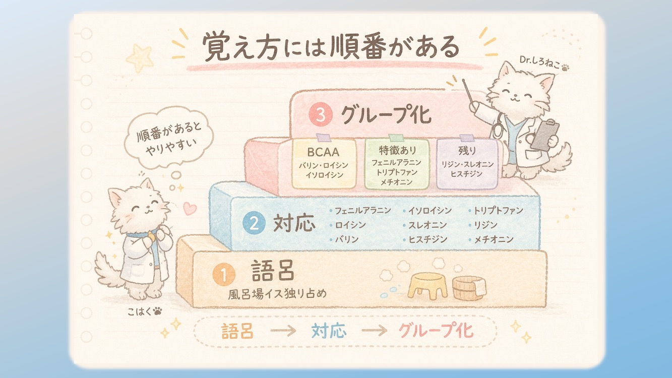 「だからこそ、リズムで覚える語呂合わせと、構造で分けるグループ化を組み合わせるのがおすすめだよ。」
